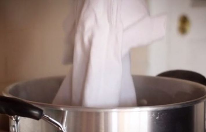 2. Introdu tricoul/camasa in apa clocotita. Cu cat apa este mai fierbinte, cu atat mai mare este contractia: