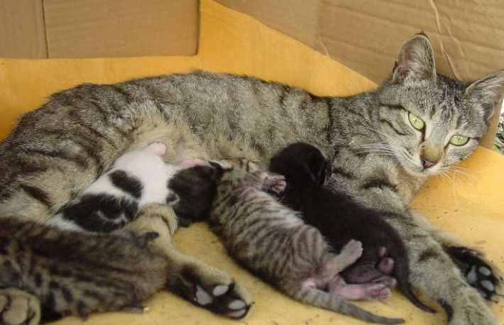 Daca in prima zi pisica-mama nu hraneste pisoii, consulta un veterinar! Nu uita: pisica-mama ar trebui sa fie in control total in timpul fatarii(nu are nevoie de ajutor).