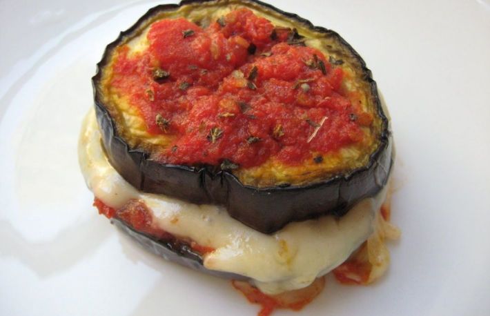 Se iau cate 2 felii de vinete, se pune intre ele cate putina branza, apasand ca sa fie bine unite.