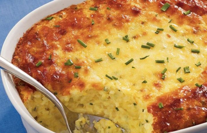 Budinca de parmezan se serveste cu sos de rosii sau de ciuperci.