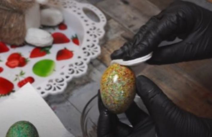 - poti combina. Treci, prima data, oul printr-o culoare, apoi prin alta sau amesteca 2,3 culori impreuna. Astfel, ouale vor iesi si mai pestritate;