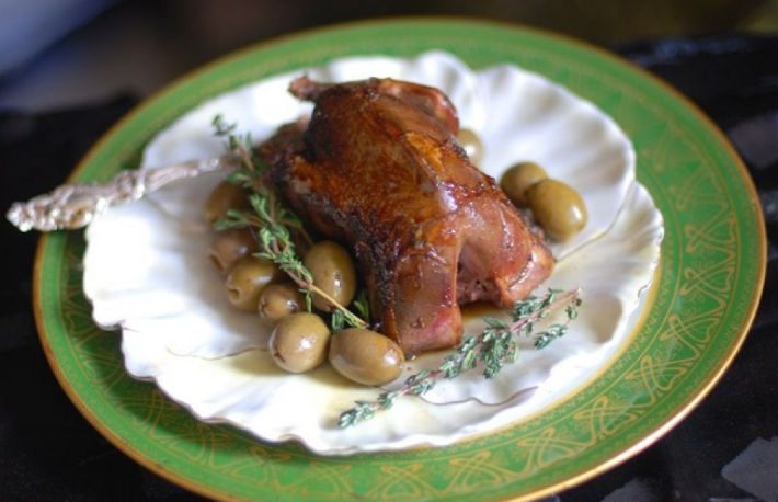 Pentru aceasta reteta cu sos rosu se folosesc 3 porumbei tineri, masline si diverse condimente pentru gust.