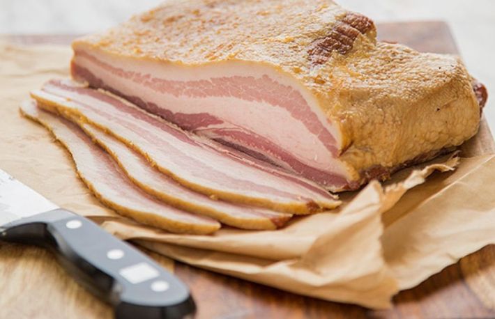 Dupa ce s-au scos muschii si pulpele, se taie slanina de la burta in fasii de un lat de palma si de lungime potrivita.