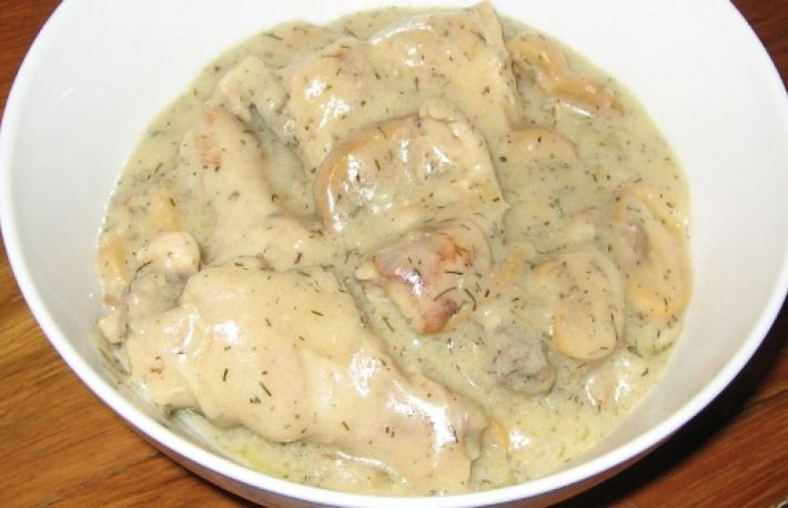O mancare complexa pe baza de carne de pui, legume, sos alb si diverse mirodenii este puiul cu ciuperci si arpagic.