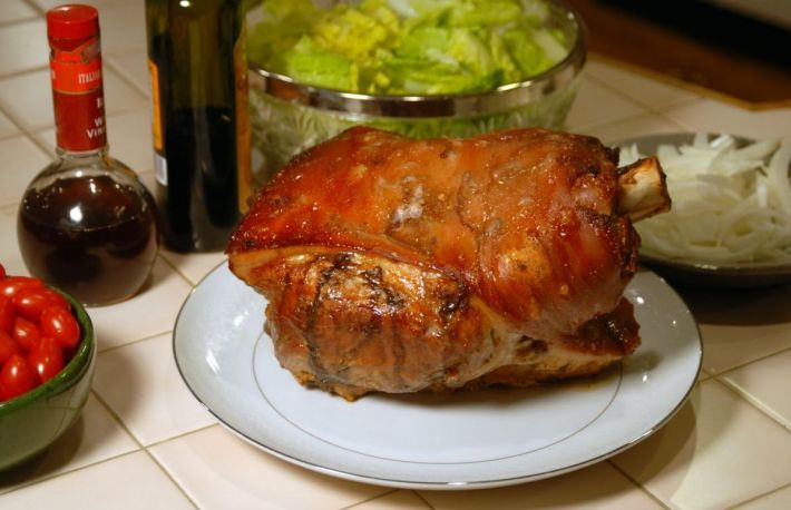 Cu o jumatate de ora inainte de a servi purcelul nu se mai unge, ca sa aiba coaja rumena, aurie si tare, cand o atingi.