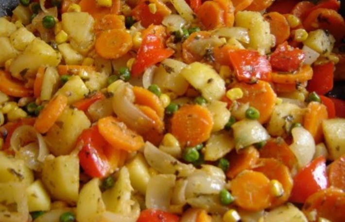 Puiul cu legume la tigaie este delicios si usor de preparat.