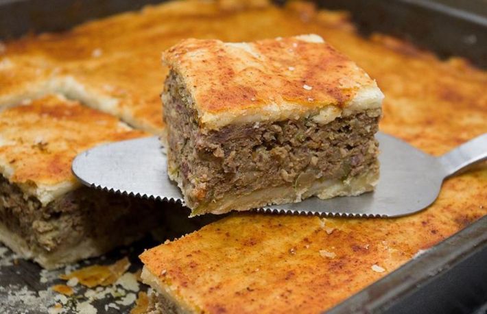 Se intinde o foaie ca de taitei, se asaza in tigaia unsa cu unt sau cu untura.