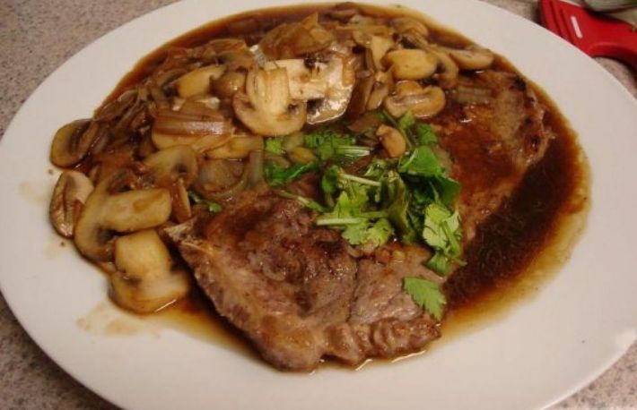 Muschiul de vaca preparat cu sos de ciuperci este o reteta foarte hranitoare si gustoasa.