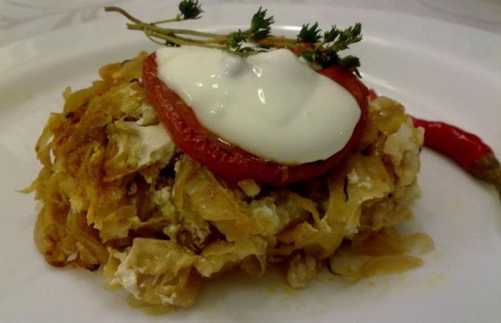 Aceasta reteta din Ardeal se obtine din straturi alternative de varza cu carne tocata si smantana.