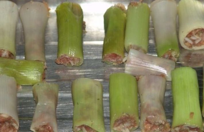 - peste un rand de praz umplut, pune praz fin taiat (cel ramas).