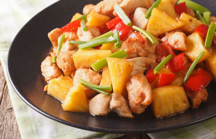 Pui cu ananas la tigaie - o reteta exotica pe care iti recomandam sa o tratezi cu incredere. Gustul minunat te va da pe spate, chiar daca esti un adept al retetelor traditionale.
