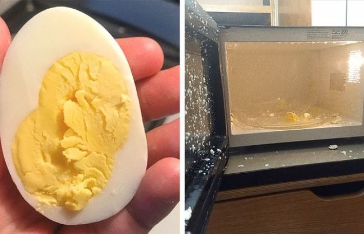 1. Oua fierte. Cand incalzesti un ou fiert in cuptorul cu microunde, aburul se acumuleaza din moleculele de apa, provocand o acumulare de presiune. Deoarece are coaja subtire, oul nu poate suporta aceasta presiune, motiv pentru care explodeaza in cuptor sau, mai rau, cand il duci la gura!