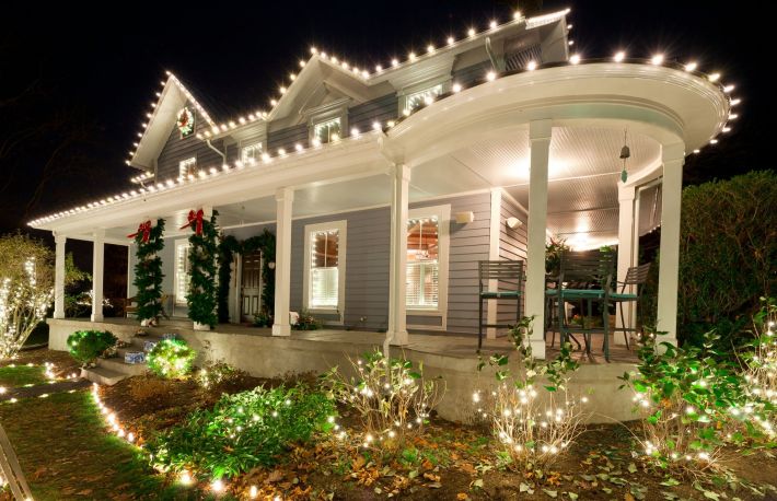 - ghirlande luminoase. Poti instala luminite pe marginea acoperisului, in jurul ferestrelor sau pe balustradele scarilor.