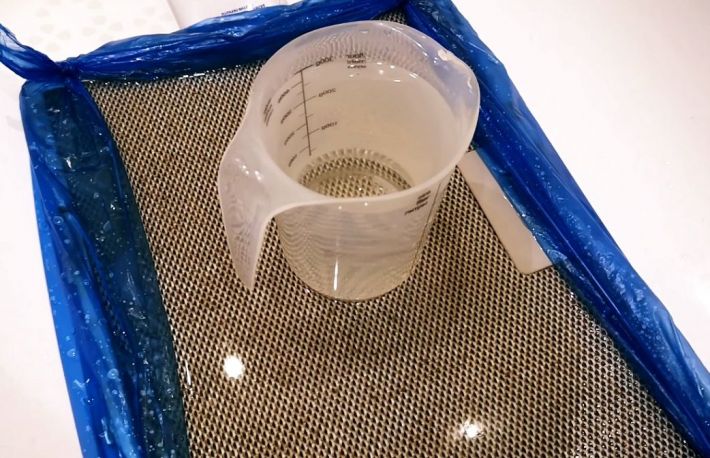 - pune o greutate pe suprafata plasei, astfel incat plasa sa fie scufundata complet in solutie;