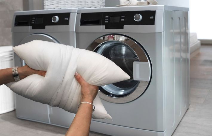 - alege un ciclu de spalare delicat, cu apa calda sau rece, in functie de eticheta pernei.
