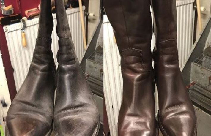 - la final, aplica vopsea pentru incaltaminte(culoarea potrivita, adica cea a pantofilor respectivi) in zona;