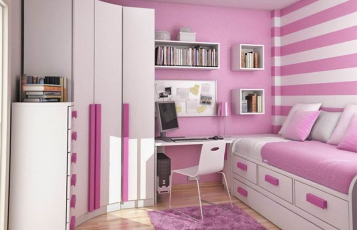 - combina, spre exemplu, dungi roz pastel si albe, de aceleasi dimensiuni, de 10 sau 20 centimetri. Alte culori pe care le mai poti folosi sunt bleu, bej sau gri.