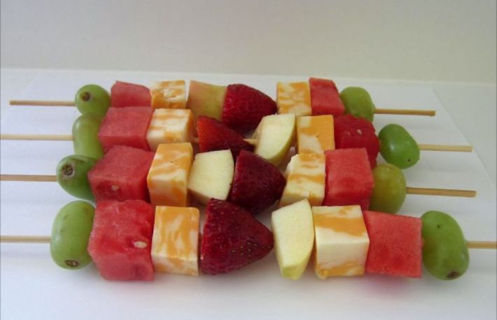 - Ce trebuie sa faceti. Pregatiti fructele – spalati-le si puneti-le pe o farfurie; decojiti-le pe cele care nu au coaja comestibila, cum ar fi pepenele verde, portocalele, kiwi si mango. Taiati fructele, folosind forme speciale(de stea, animale, inimioare, etc) pe care le puteti cumpara din orice fel de magazine. Infingeti fructele pe betele de frigarui in mod diversificat.