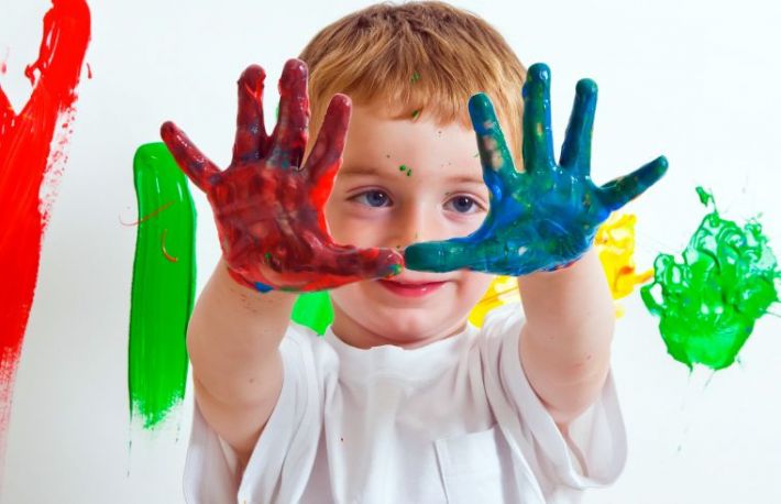 Puneti la indemana toate materialele necesare. Daca folositi tempera sau vopsea in ulei, puneti culorile in boluri separate si tineti aproape servetele, pentru a putea curata. Daca doriti sa imprimati palmele copilului in ipsos, cititi instructiunile de folosire in prealabil.