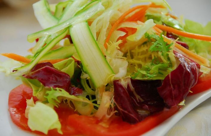 Daca iei masa la un restaurant cu specific italienesc poti comanda peste cu legume la gratar si salata de fructe.