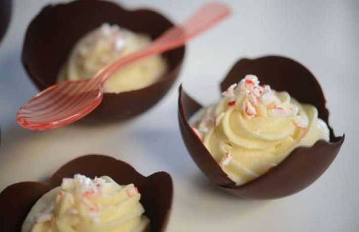 In aceasta ciocolata topita, dar aproape rece, se introduc bomboanele pe care vrem sa le glasam: caramele de ciocolata, bucatele de nuga, coaja zaharisita de portocala, castane zaharisite etc. precum si pesmeti, cornete etc. folosindu-ne de o furculita anume, dreapta si cu trei dinti.