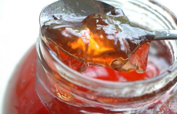 Se lasa sa se limpezeasca, se trece din nou printr-o panza si se pune la fiert cu zaharul.