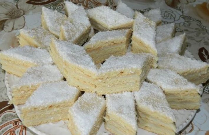 - lasa prajitura, apoi, la rece, in frigider pana a doua zi cand o poti taia in romburi si pudra cu zahar pudra.