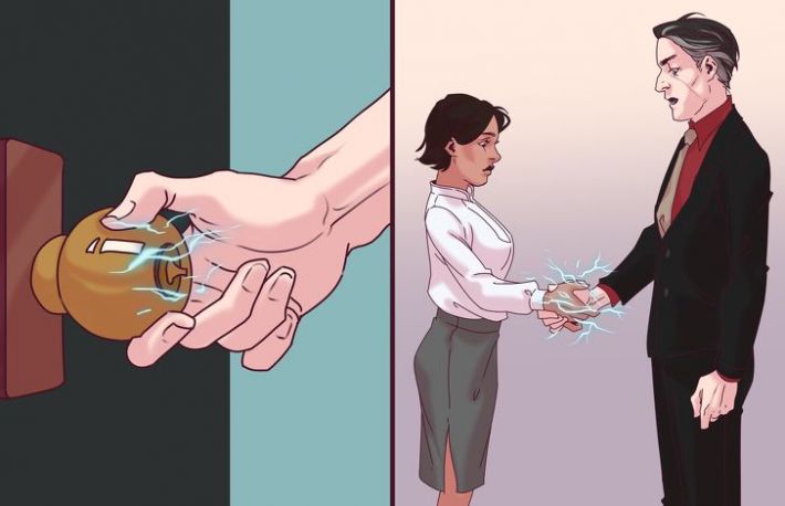 1. Socurile electrice. Oricare dintre noi am experimentat socurile electrice, mai ales la locul de munca. Se intampla sa pui mana pe clanta usii de la intrare si sa simti ca te curentezi. Nu e o senzatie placuta, asa ca trebuie sa faci ceva. Acest fenomen se intampla din cauza incarcarii hainelor cu sarcina electrica prin frecare. Hainele sintetice se incarca din plin, deci evita-le si incearca sa porti materiale naturale, precum bumbacul.