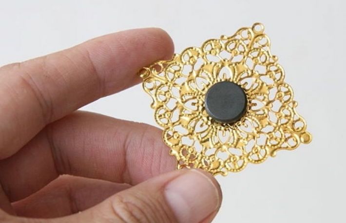 - Presati partea cu lipici a magnetului pe spatele bijuteriei stricate.