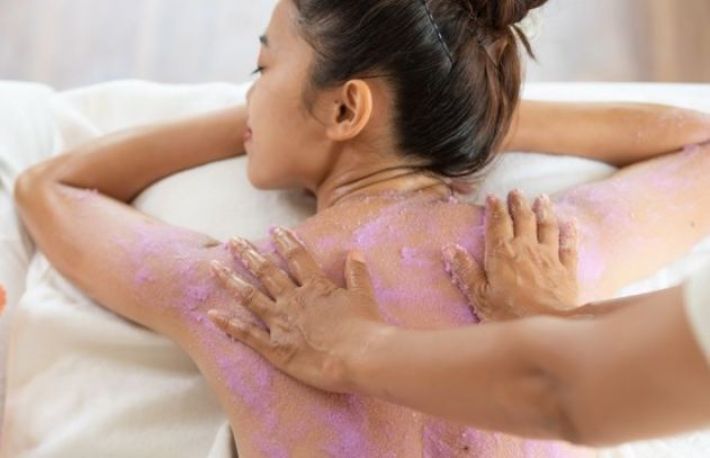 4. Incearca un exfoliant corporal coreean. Exfoliantele de corp(scrub) din Coreea sunt diferite de exfoliantele conventionale. Nu se utilizeaza doar un gel exfoliant si mainile goale, ci si niste manusi cu o textura asemanatoare unui smirghel. Astfel, sunt indepartate mai usor celulele moarte ale pielii.