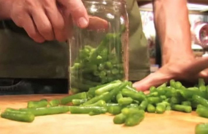 Se alege fasole tanara si fara ate, fie fasole verde fidea ori grasa si se curata. Nu se spala. Separat se amesteca pentru 5 kg de fasole, ½ kg de zahar tos cu 1 kg de sare.