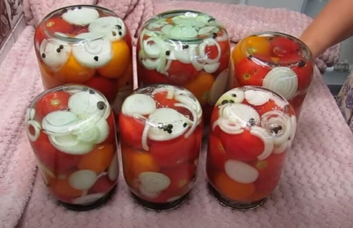 - umple borcanele cu rosii si ceapa, in straturi;