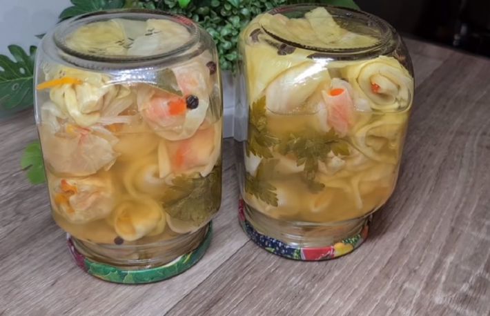 - aseaza rulourile in borcanele, alternand fiecare strat cu cate un fir de patrunjel proaspat.