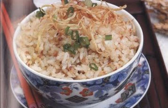 - presara, daca doresti, peste orez frunze de ceapa verde tocata si fasii de ghimbir prajit.