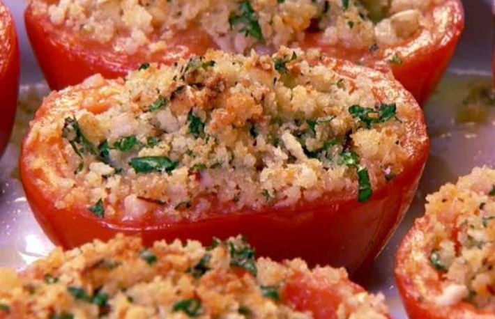 Se asaza intr-o cratita cu un sos facut dintr-o lingura de ulei in care s-a prajit o ceapa tocata, miezul scos din rosii, faina, zahar si sare.