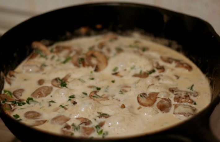 Totul se toarna peste ciuperci si se lasa sa dea cateva clocote.