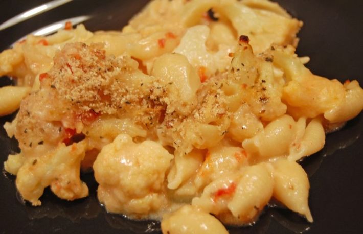 Daca este necesar, se mai adauga lapte. Cand este gata, se amesteca cu smantana si cu branza rasa si se toarna peste conopida, incet, ca sa patrunda printre buchete.