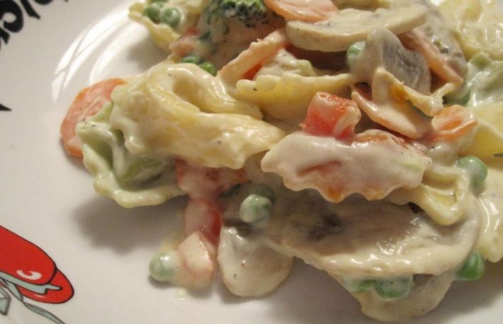 Se amesteca separat smantana cu faina si se toarna deasupra.
