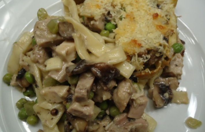 O mancare de legume delicioasa cu sos de vin si condimente este telina cu ciuperci.