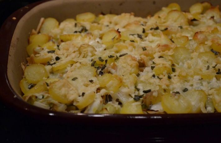 Varza cu branza la cuptor se serveste calda.