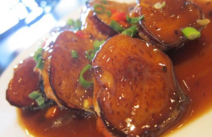 Mancarea de vinete impanate cu sos se serveste rece.