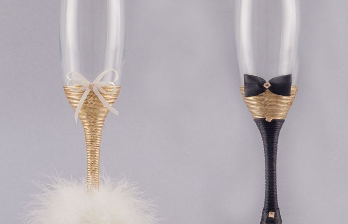 Daca paharele cu decor in alb si negru sunt cea mai buna optiune pentru miri, invitatii lor de seama (nasii, parintii mirilor, domnisoarele si cavalerii de onoare) vor fi cu siguranta dornici sa ciocneasca sampanie alaturi de protagonistii principali ai nuntii din pahare cu picior elegante, frumos decorate.