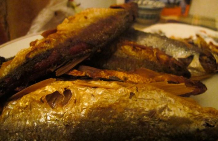 Se serveste cu lamaie si garnitura de cartofi natur sau cu mujdei de usturoi si mamaliga, dupa preferinte.
