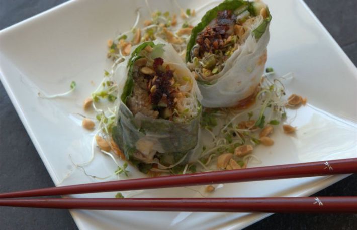 Ruladele cu sardele se servesc cu garnitura de legume.