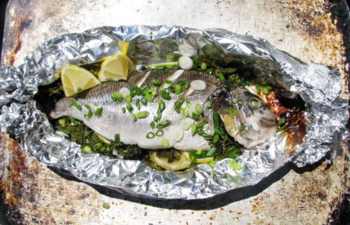 Acest otet se poate adauga apoi la fiert. Dupa ce a fiert zarzavatul, se trage cratita la o parte, se asaza pestele pe gratarul vasului si se lasa in apa.