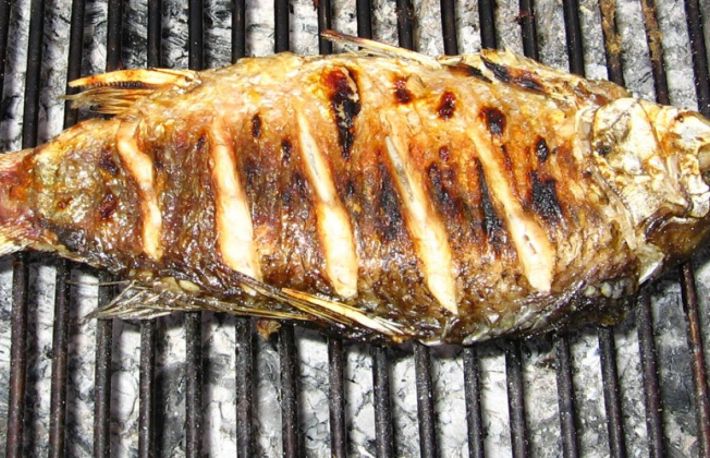 Pe masura ce sunt gata, se pun pe un fund si usor, cu un cutit, se curata solzii si negreala ramasa de la fript.