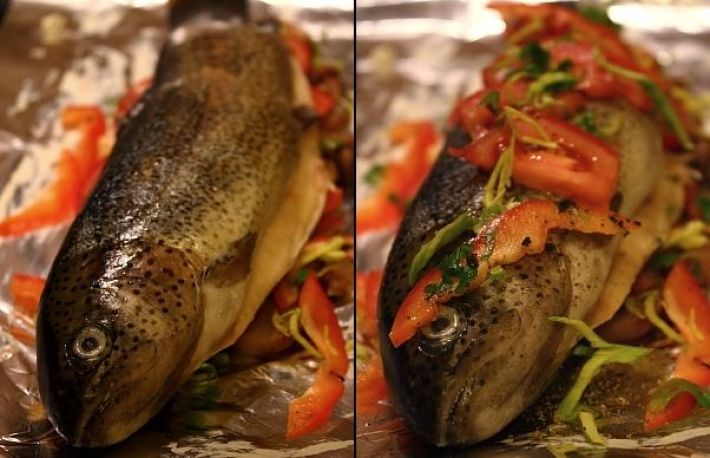 - sareaza pestele si condimenteaza-l peste tot.