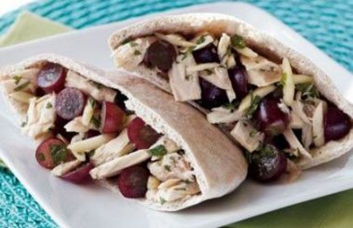 - amesteca bucatile de ton, strugurii si fulgii de migdale intr-un castron