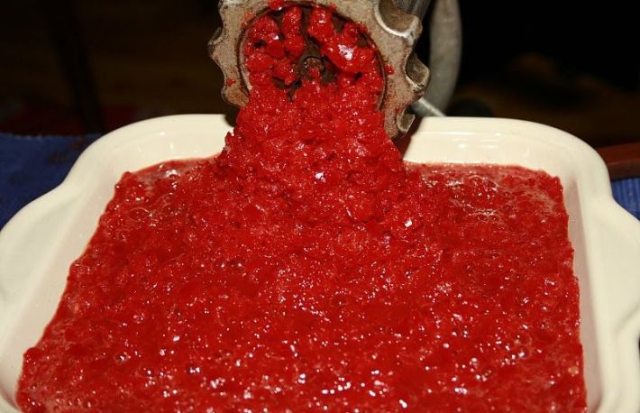 - spala rosiile, scoate-le cotoarele si feliaza-le astfel incat sa le poti trece prin masina care va separa pielitele si semintele de pulpa.