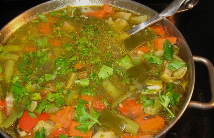 Pentru aceasta supa se folosesc legume diverse care dau un aspect deosebit din punct de vedere cromatic, dar si o aroma pe masura.